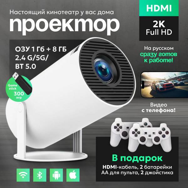 But what truly sets this projector apart is its exceptional gaming capabilities. Enjoy relaxed home gaming sessions with two included gamepads, perfect for competitive multiplayer fun with friends. The responsive and easy-to-use gamepads ensure maximum comfort and enjoyment. This feature-rich projector offers seamless connectivity and compatibility with a wide range of devices, making it a versatile addition to any home entertainment setup.
