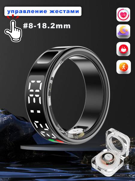 Smart ring, fitness tracker, smart ring with display, heart rate monitor, blood oxygen monitor, sleep tracker, step counter, calorie counter, waterproof smart ring, fitness ring, smart ring for men, smart ring for women, Jitterbug control, hands-free control, IP68 waterproof, stainless steel smart ring, Android compatible, iOS compatible, size 8 smart ring, black smart ring.