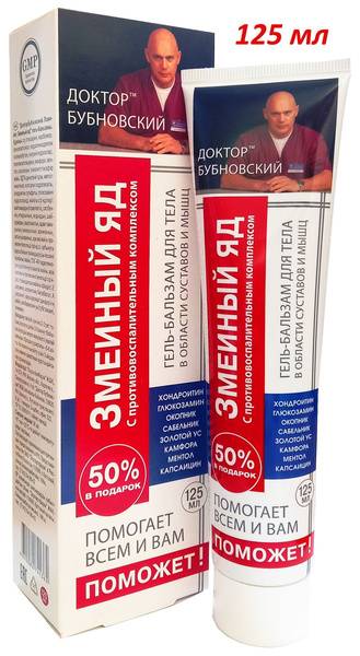 Experience powerful relief with Dr. Bubnovsky's Snake Venom Gel-Balsam. This 125ml formula, enriched with natural ingredients like chondroitin, glucosamine, comfrey, burdock, and more, provides potent anti-inflammatory support for your body.