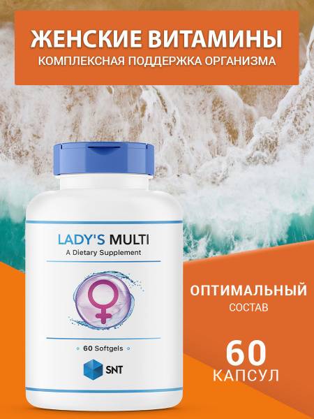 SNT Lady's Multi, women's multivitamin, multivitamin for women, vitamins for women, minerals for women, women's health supplements, antioxidant supplement, anti-aging supplement, energy boost, improve immunity, healthy hair, healthy skin, healthy nails, hormonal balance, metabolism support, stress relief, better sleep, 60 capsules.