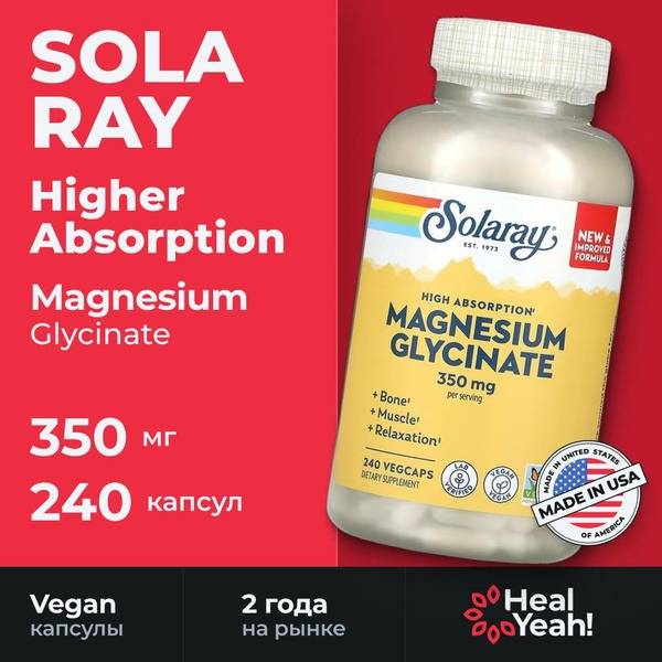 Solaray Magnesium Glycinate offers superior absorption for optimal magnesium benefits. Since 1973, Solaray has sourced high-quality ingredients globally to create effective supplements. This vegan formula provides nutritional support for healthy muscle function, relaxation, and stress management. Each capsule delivers 350mg of magnesium glycinate (bisglycinate), known for its superior bioavailability. Take 4 vegetarian capsules daily with food and water. Experience the Solaray difference – brighter living, naturally.