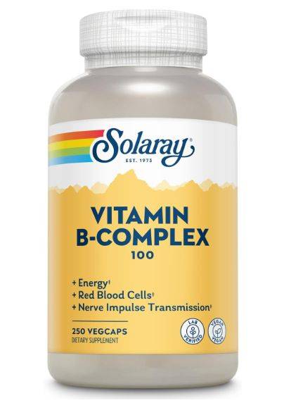 Title: Solaray Vitamin B-Complex 100mg - 250 Capsules: Boost Energy, Metabolism & Mood