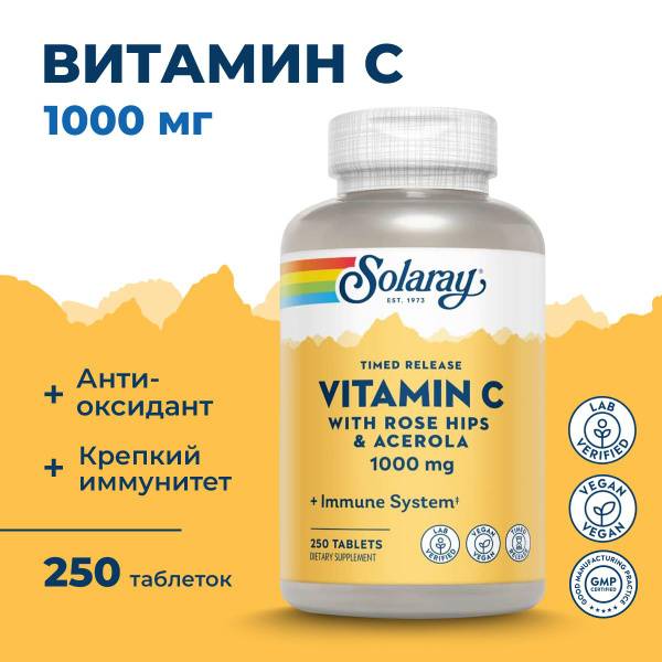 Solaray Vitamin C Time Release with Rosehips & Acerola - 1000mg, 250 Capsules