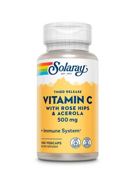 Vitamin C, time release, sustained release, immune support, rosehips, acerola, 500mg, Solaray, vegan, vegetarian, supplement, dietary supplement, antioxidant, lab tested, high quality, immune system, long lasting, natural, health, wellness.