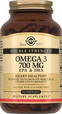 Experience the comprehensive benefits of Solgar's Double Strength Omega-3 supplement. Each softgel delivers a potent 700mg of EPA and DHA, the two most crucial Omega-3 fatty acids, for a total of 1400mg per daily serving. These essential fatty acids are vital for maintaining optimal health, but your body cannot produce them on its own – making supplementation crucial.
