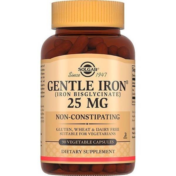 Solgar Gentle Iron provides 25mg of easily absorbed, organic chelated iron per capsule. Iron is crucial for hemoglobin production, oxygen transport, nerve function, and immune support. Demand for iron increases during pregnancy and lactation. This gentle formula minimizes the risk of gastrointestinal side effects often associated with other iron supplements. Take one capsule daily. Please note: Packaging may vary.