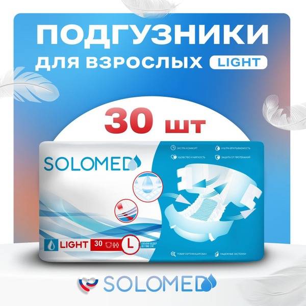 Solomed Light adult diapers are manufactured to rigorous quality standards, ensuring superior performance and reliability. They are suitable for use with government assistance programs such as Medicare and Medicaid (please check individual program guidelines). This product is part of a complete line of sizes and styles of adult diapers from the trusted Russian brand, Solomed. Find the perfect fit for your needs.