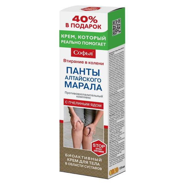 Joint pain relief cream, Altai maral antler velvet, osteoarthritis cream, joint pain treatment, herbal joint cream, anti-inflammatory cream, natural joint pain relief, musculoskeletal health, long-lasting pain relief, Sophia cream, KorolevFarm, maral antler extract, herbal extracts, anti-rheumatic cream, age-related joint pain.