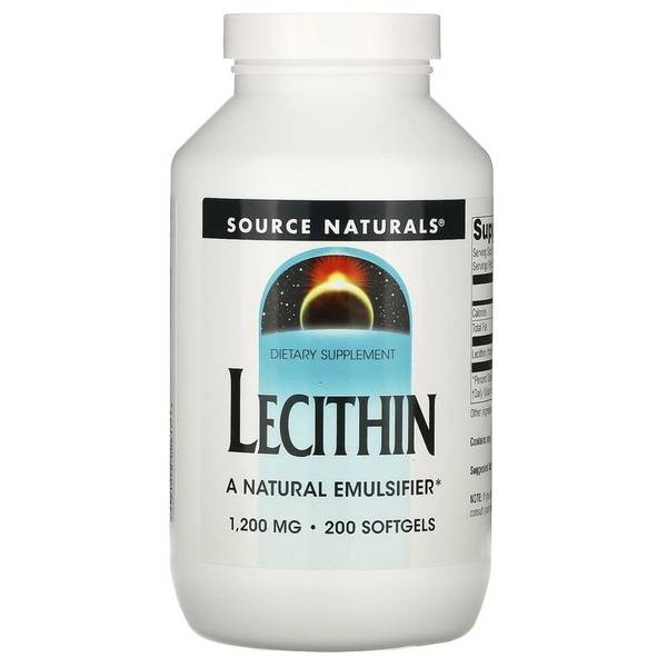 "name": "Source Naturals Lecithin 1200mg, 200 Softgels",