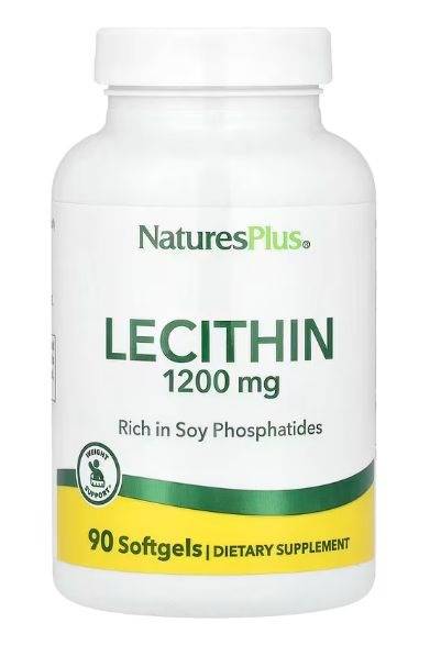 Nature's Plus Lecithin 1200mg, 90 Softgels: A natural supplement formulated to support brain, liver, nervous system, and cardiovascular health. Its convenient softgel format ensures easy and comfortable daily intake. Ideal for those seeking to optimize their cognitive function, support their liver health, and enhance their overall well-being.