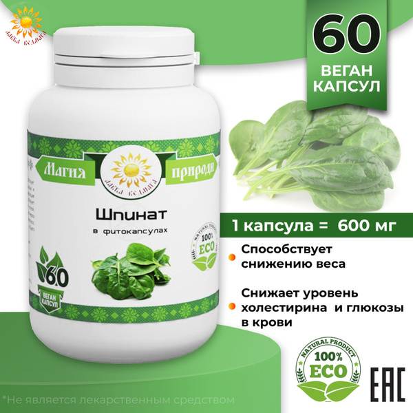 Title: Spinach Plant-Based Dietary Supplement (Non-Dietary Supplement), 60 Vegan Capsules – For Bones, Joints, Immunity, Vision, Women's Health & Weight Management