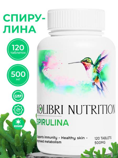 Spirulina, Kolibri Nutrition, Spirulina tablets, 500mg Spirulina, Spirulina supplement, blue-green algae, superfood, vitamins, minerals, antioxidants, protein, immune support, detox, energy boost, well-being, healthy lifestyle, dietary supplement, plant-based protein, iron supplement, B vitamins.