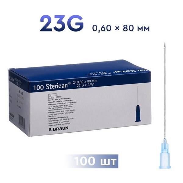 Sterican, B.Braun, injection needles, 23G, 0.60mm, 80mm, single-use, sterile, disposable, thin-walled, silicone coated, triple-bevel, low pain, phlebology needles, neurology needles, surgery needles, Luer-Slip, Luer-Lok, medical needles, needle gauge, BL/LB, BC/SB, Germany
