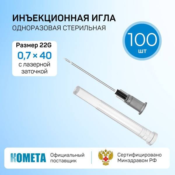 Keywords: hypodermic needle, injection needle, disposable needle, sterile needle, 22G needle, 0.7mm needle, 40mm needle, luer lock needle, luer tip needle, single-use needle, medical needle, sterile disposable needles, medical supplies, healthcare supplies, injection supplies, syringe needle, pain-free injection, tri-bevel needle, silicone coated needle, ethylene oxide sterilized, apyrogenic, non-toxic, 100 pack, bulk needles