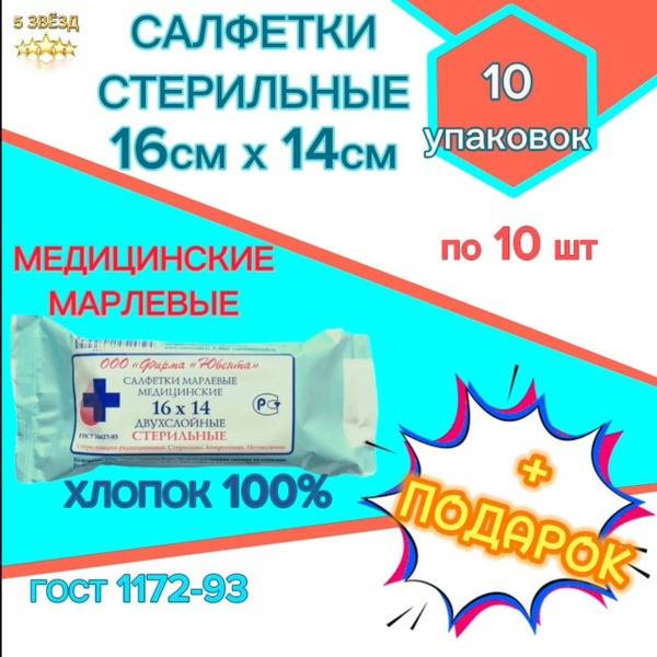 Each compress measures 16 cm x 14 cm with a density of 32 g/m2, supplied in packs of 10 units.