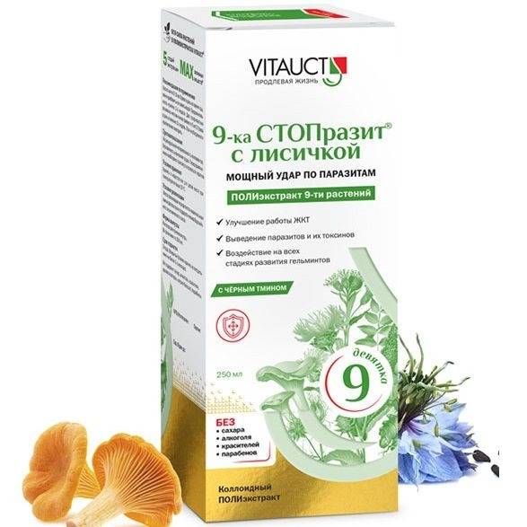parasite cleanse, parasite detox, gut health, digestive health, immune support, black walnut, elecampane, horsetail, chanterelle, Vitauct, 9-ka STOPrazit, natural remedies, herbal remedy, anti-parasite, anti-inflammatory, 250ml, Russia, sugar-free, alcohol-free, digestion support, intestinal health, healthy gut, parasite removal, detoxification, natural parasite treatment, herbal parasite cleanse.