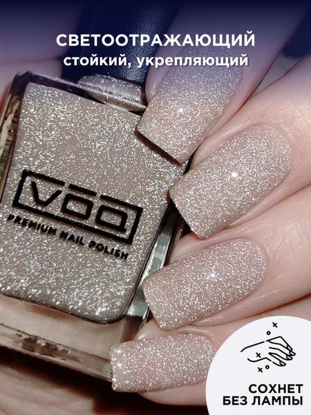 The unique reflective particles gently sparkle in natural light, while under artificial illumination, they unleash their full brilliance for a captivating glow. Its high-opacity formula ensures smooth application and helps conceal nail imperfections, providing a flawless finish.