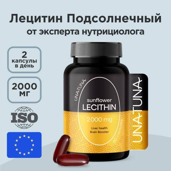 Keywords: Sunflower lecithin, lecithin 2000mg, lecithin supplement, phospholipids, brain health, cardiovascular health, liver support, kidney support, immune support, stress reduction, non-GMO, dietary supplement, Una Tuna, vitamins, health supplement, women's health, men's health, 60 capsules, healthy lifestyle.
