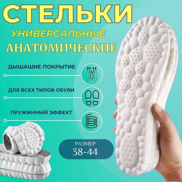 These universal anatomical orthopedic sports insoles are engineered for active adults. Designed to enhance comfort and reduce leg fatigue, they feature a spring effect and advanced cushioning to minimize impact on feet and joints during physical activity.