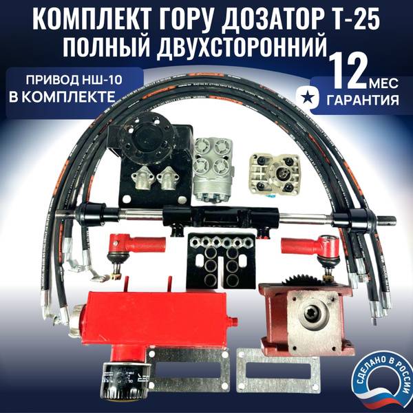 Upgrade your T-25 tractor to a high-precision, easily controlled hydraulic system with our comprehensive conversion kit. Ideal for applications demanding accuracy and reliability, this kit seamlessly integrates a high-precision metering pump with your power steering (GORU) and a double-acting hydraulic cylinder.