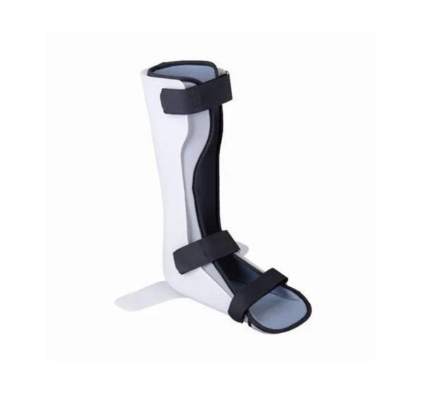 The Trives T.47.41 derotation shoe is a lightweight, durable plastic leg brace designed for effective hip and thigh stabilization. Its anatomical design comfortably supports the lower leg, while a removable soft insert prevents pressure sores. A removable, Velcro-secured limiting bar provides adjustable rotational control. Universal design fits both left and right legs. Ideal for post-operative recovery, stroke rehabilitation, and managing various lower limb conditions.