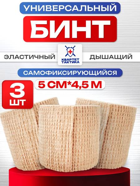 The Quartet Tactical Cohesive Bandage is a self-adherent, elastic medical tape perfect for tactical situations, home first aid kits, and sports medicine. This 3-pack of 5cm x 4.5m bandages provides versatile support and protection for various needs.