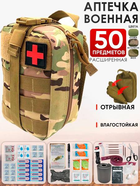 Our waterproof tactical first-aid kit is designed for rapid response in any emergency situation. This comprehensive 50-piece survival kit includes essential items for treating various wounds and injuries, making it ideal for hiking, camping, hunting, military use, and emergency preparedness. The durable, high-quality organizer keeps your supplies secure and organized, and its detachable pouch allows for convenient belt carry. This kit boasts a tourniquet, tactical shears, bandages, compression bandages, antiseptic wipes, burn gel, and much more. Whether you're an outdoor enthusiast, a first responder, or simply want peace of mind, this essential first-aid kit is ready when you are. Perfect for cars, homes, backpacks, and tactical situations.