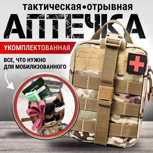 This tactical first-aid kit features a tear-away design for one-handed access. Simply unfasten the quick-release buckle and use the large pull tab. Its square shape allows for side mounting on MOLLE platforms, eliminating the need to unfasten the buckle for faster access. The kit includes: 2 Tourniquets; 1 x 10cm Israeli Pressure Bandage; 1 x 15cm Israeli Pressure Bandage; 1 Burn Dressing; 1 Permanent Marker; 1 Triangular Bandage; 1 Medical Tape; 1 Heavy-Duty Tape; 1 Tactical Scissors; 1 Z-Fold Bandage; 1 Large Splint; 1 Pair of Gloves; 1 Emergency Blanket; 2 Breathing Stimulation Wipes; 3 Alcohol Wipes; 2 Occlusive Dressings (vented and non-vented); 1 Large Sterile Bandage; 1 Esmarch Bandage (1400mm); 1 Breathing Tube.