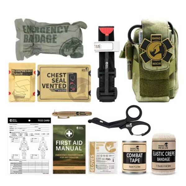 Description: This comprehensive first-aid kit features a superior, one-handed aluminum tourniquet, a vented chest seal for penetrating chest trauma, and an all-in-one pressure bandage. Our aluminum tourniquet rod surpasses plastic alternatives, ensuring reliable hemorrhage control even in extreme conditions. The integrated handle streamlines application, and the reinforced buckle and internal strap guarantee highly effective hemostasis. The chest seal's advanced adhesive provides superior sealing, even on wet or hairy surfaces, while the pressure bandage's design prevents unraveling and allows for easy application and secure closure. All components are designed for quick, effective use in emergency situations.