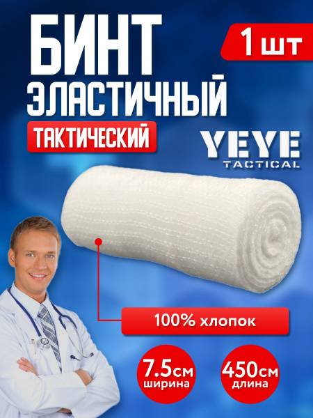 The YEYE elastic bandage is an essential component of any first-aid kit or trauma bag. Its versatility allows for the immobilization of sprains and fractures, securement of wound dressings, and the application of external pressure to wounds. This non-sterile elastic bandage is designed for multiple uses and can be applied directly over a wound after tamponade or over a sterile bandage. Measuring 7.5 cm wide and approximately 450 cm long (length is approximate due to the material's elasticity), this tactical bandage is suitable for adults and children, providing a secure hold on various body parts. Its elasticity ensures a snug, customized fit. The YEYE bandage is ideal for pre-hospital, emergency medical, and clinical settings, supporting self-aid, first aid, and mutual aid in diverse environments ranging from the battlefield to the home. Hypoallergenic (except in cases of individual sensitivity to components). Be prepared to render aid!