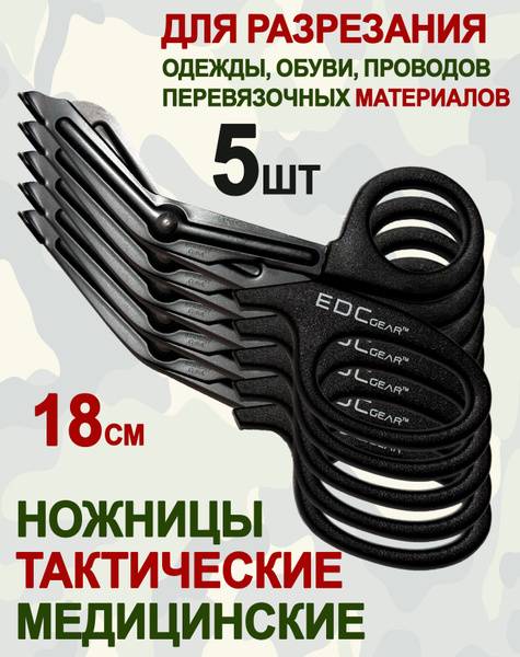 These tactical medical scissors from EDC Gear are essential for first aid, easily cutting through thick fabric, tourniquets, ropes, threads, straps, multi-layered bandages, and clothing. Functioning as atraumatic surgical instruments, they're ideal for removing casts and sutures. Perfect for school, craft projects, and DIY tasks, these versatile scissors feature a non-slip grip and can be attached to body armor for immediate self-defense and emergency medical assistance. Included in field medic backpacks and tactical first-aid pouches, they're a safe alternative to tactical knives, equally suited for fishing, hunting, climbing, camping, and crafting. Their blunt, curved tips prevent accidental injury, while their sharp, durable stainless steel blades effortlessly cut through aluminum wire, rubber, and thin metal. The blades' precise alignment ensures a clean cut, while the curved design provides enhanced leverage and control. A small "tongue" on the blade conveniently moves cut materials aside. These indispensable scissors are perfect for military personnel, medical professionals, fishermen, climbers, hikers, hunters, seamstresses, crafters, and scrapbookers.