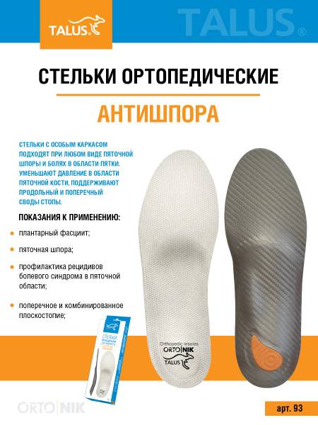 Experience superior comfort and pain relief with Talus 93 Anti-Spur orthotic insoles. Designed with a supportive, structured frame, these insoles provide targeted relief from plantar fasciitis, heel spurs, and both longitudinal and combined flat feet. The enhanced ecoflex cushioning absorbs shock, reducing pressure on the plantar muscles and minimizing pain during walking. The breathable textile top layer wicks away moisture, keeping your feet dry and comfortable all day long. Ideal for everyday use in men's and women's footwear, these insoles make a thoughtful gift and significantly improve quality of life. For best results, remove and air dry regularly; hand wash as needed. They dry quickly and are easy to maintain. Experience the Talus difference in orthotic support.