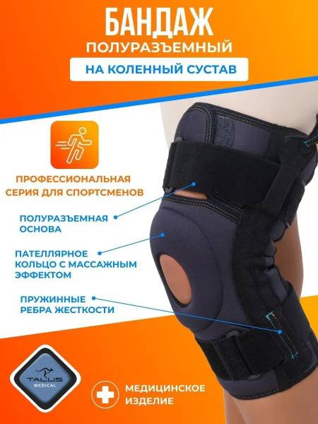 Benefits include superior breathability thanks to three-layer Uniplex T material; adjustable thigh fit; patellar ring with massage ribs to improve circulation; adjustable support via removable stays; secure fit with removable elastic straps; comfortable, chafe-free design with a knit elastic insert behind the knee; and a silicone grip to prevent slippage. This brace stabilizes the knee joint and patella, protects ligaments, improves circulation, provides gentle warmth, restores mobility, reduces pain, and increases muscle elasticity.