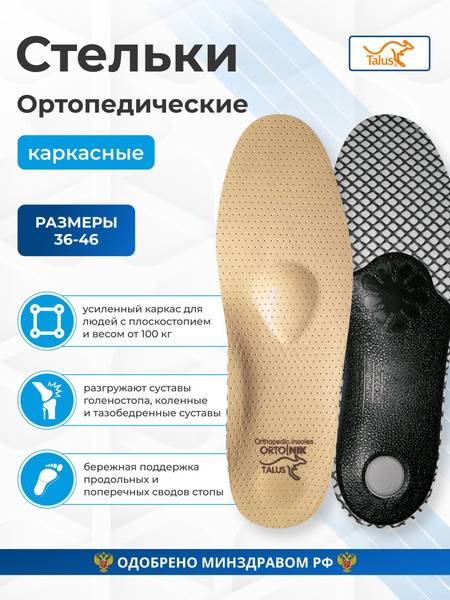 Experience superior comfort and support with Talus orthotic insoles, featuring a rigid frame ideal for flat feet, high arches, and individuals weighing over 220 lbs (100 kg). These insoles provide reliable support for both longitudinal and transverse arches, reducing stress on the forefoot, ankles, knees, and hips. The optimally sized, medium-firm arch support and pronounced longitudinal arch contour are specifically designed for the treatment and prevention of combined flat feet. A metatarsal pad and heel cushion crafted from durable, high-performance Carbosan material offer exceptional cushioning and comfort.