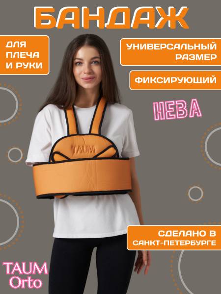 The TAUM Orto "Neva" shoulder and arm support sling offers a superior solution for immobilizing and supporting the upper extremities. This versatile orange sling, also known as a Desault bandage, is designed for comfortable and effective recovery from a range of conditions including: