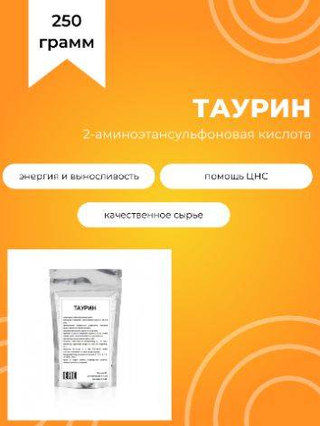 Important Information: Not a drug or dietary supplement. Store in a cool, dry place. Keep out of reach of children. Packaging contains 250g of taurine powder. Scoop measurement: 150mg / 1100mg. GMO-free, filler-free, preservative-free.