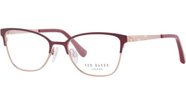 Experience sophisticated style with the Ted Baker Gia 2241 244 eyeglasses. These elegant cat-eye frames feature a luxurious dark burgundy exterior accented with rose gold, creating a stunning contrast. The slim, intricately embossed temples add a touch of refinement, while the full-rim metal construction ensures durability and compatibility with all prescriptions, including high powers and astigmatism. The medium-sized frame fits most face shapes comfortably. Enjoy added comfort and protection with the integrated Flex mechanism in the temples, preventing breakage and ensuring all-day wear. The signature "Love at First Sight" inscription on an inner temple adds a touch of playful charm. The 128mm width is ideal for medium to smaller face sizes. Presented in a branded case with cleaning cloth, these Italian-made (Mondottica srl) frames boast recognizable Ted Baker style and come with a 1-year warranty. Certified for sale in Russia.