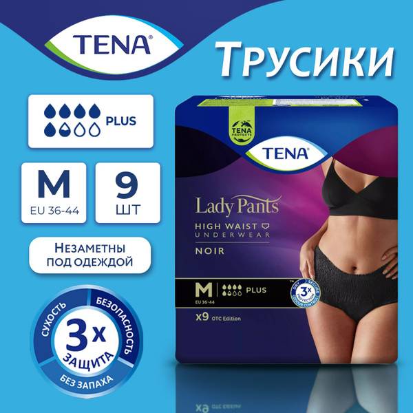 TENA Lady Pants, TENA Lady Pants Plus Noir, adult diapers, adult incontinence underwear, postpartum underwear, disposable underwear, period underwear, heavy flow underwear, incontinence protection, postpartum care, C-section recovery, absorbent underwear, breathable underwear, comfortable underwear, discreet underwear, black underwear, size M, EU 36-44, 9 count, women's underwear, menstrual protection, hygiene products, medical supplies, disposable hygiene products, disposable sanitary protection, high waisted underwear.