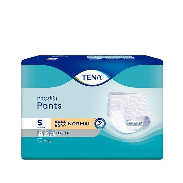 Experience superior comfort and discretion with Tena ProSkin Pants Normal Small absorbent underwear. Designed for active individuals with a waist size of 65-85cm, these pants provide a secure, comfortable fit without restricting movement. Our advanced Feel Dry technology ensures superior absorbency and dryness, resulting in a thinner, yet more effective, product. The carefully chosen materials and secure fastening system offer exceptional comfort and freedom of movement. Discreet and virtually silent, Tena ProSkin Pants will confidently blend under clothing, allowing you to live life to the fullest. (15 count per pack).
