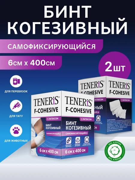 This TENERIS self-adherent cohesive bandage provides secure, comfortable fixation without the need for clips or pins. Made with a latex-based fabric, this 6cm x 4m elastic bandage conforms perfectly to even the most challenging body contours, including joints and areas with conical or rounded shapes. Ideal for securing dressings, padding, and compresses, its self-adhesive properties make application quick and easy. Perfect for post-tattoo care, pet first aid, and as an essential component of any home first-aid kit. This two-pack offers convenient and cost-effective wound care.