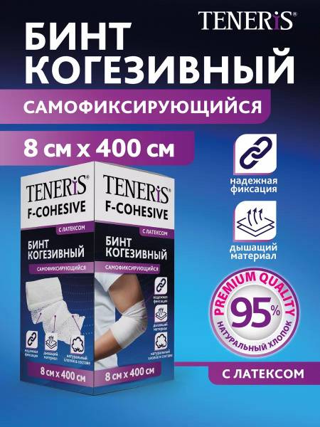 The TENERIS self-adherent elastic cohesive bandage provides secure, comfortable fixation of dressings, padding, and compresses on various body parts, including joints and areas with conical or round shapes. Made with a latex-based fabric, this 8cm x 400cm bandage adheres to itself, eliminating the need for clips or pins. Ideal for post-tattoo care, animal first aid, and general wound management, this essential bandage is a must-have for any home first-aid kit. Its gentle, flexible material conforms comfortably to the body without restricting movement.