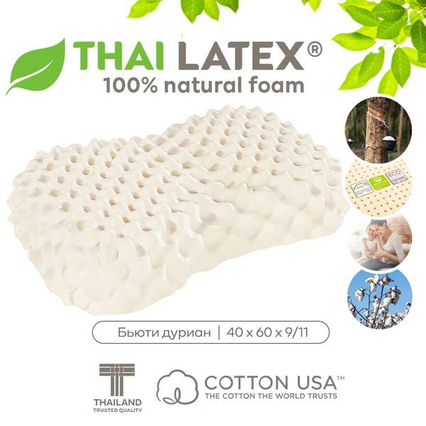 Indulge in the luxury and health benefits of the Thai Latex® Beauty Pillow (Durian), crafted from 100% natural Thai latex. Designed for ultimate comfort and beauty sleep, this pillow boasts certifications from ECO Institut de®, Greenguard Gold®, GOLS (Global Organic Latex Standard®), Standard 100 OEKO-Tex®, and LGA®, ensuring its quality and suitability for the US and Canadian markets. Encased in a 100% certified organic cotton cover (with zipper) and COTTON USA®, it arrives uncompressed for optimal shape. Produced by THAI LATEX® Co. Ltd., a leading brand in Thailand (also known as Quatex and Sanbada, available in Phuket and Pattaya), this pillow offers: