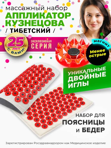 Keywords: Kuznetsov applicator, acupuncture mat, acupressure mat, Tibetan applicator, massage mat, pain relief mat, back pain relief, lumbar roller, magnetic therapy, pain relief, relaxation, energy boost, improved sleep, PMS relief, cellulite reduction, natural linen, medical device, Roszdravnadzor registered, made in Russia.