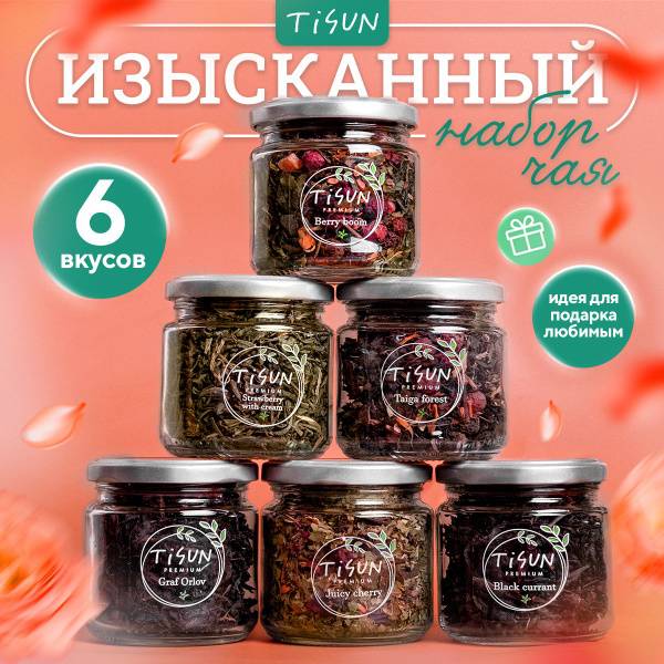 SEO Keywords: loose leaf tea, gift set, black tea, green tea, herbal tea, tisun tea, tea gift basket, father's day gift, mother's day gift, birthday gift, valentine's day gift, christmas gift, new year's gift, teacher gift, assortment tea, 6 flavors tea, premium tea, gift for her, gift for him, tea ceremony, sencha, gunpowder green tea, hibiscus tea, forest berry tea, strawberry cream tea, raspberry paradise tea, juicy cherry tea, black currant tea, berry boom tea, loose leaf tea gift box, tea brewing instructions.