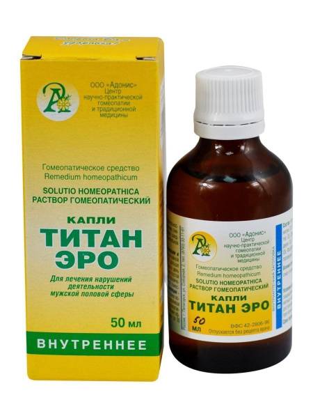 Titan-Ero Adonis is a multi-component herbal supplement in drops designed to address impotence and other male urogenital disorders. It promotes healthy sexual function, contributes to a fulfilling intimate life, helps manage stress, and improves erectile function by supporting blood flow to the penis. This natural formula is carefully crafted using a blend of homeopathic ingredients to help restore vitality and sexual performance.