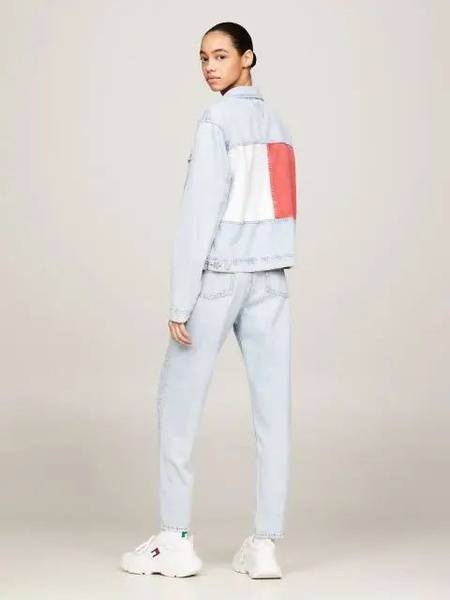 Description: This rugged Tommy Jeans denim jacket boasts a classic fit crafted from a durable 80% cotton, 20% recycled cotton blend. Showcasing iconic Tommy Jeans flag branding on the chest, this jacket features eye-catching color-blocked detailing on the back, authentic-looking distressing on the front and back, and faded stitching for added character. Finished with a semi-spread collar, two buttoned chest pockets, and two angled waist pockets, this jacket offers both style and practicality. Part of the Better Cotton Initiative, it's a sustainable choice for the modern wardrobe. Our model (176cm) wears a size S.