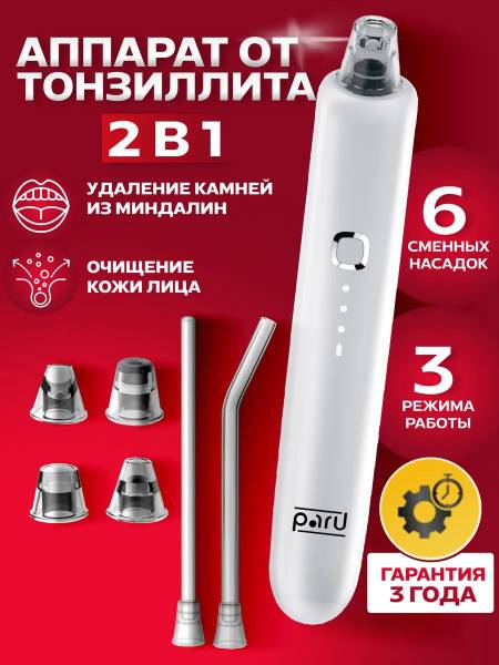 The PARU Tonsil Irrigator offers an innovative solution for removing tonsil stones, treating tonsillitis, and achieving a radiant complexion. This versatile device combines effective tonsil irrigation and stone removal with facial vacuum cleaning and pore purification. Three adjustable suction settings allow for personalized treatment. The comprehensive kit includes two specialized tonsil irrigation and stone removal nozzles, plus four bonus facial cleansing attachments for exfoliation, oil removal, makeup residue clearing, and delicate eye/lip area care. Its unique tonsil irrigation nozzles make it an indispensable tool for managing tonsillitis. Experience professional-grade facial treatments at home, including deep cleansing, vacuum pore cleaning, pore reduction, oil control, and a lifting effect, all while promoting anti-aging benefits. The rechargeable PARU device boasts a convenient compact design and a charge indicator, perfect for both home and travel use. Effectively combat bad breath, reduce inflammation, prevent tongue coating, and manage tonsillitis with this at-home tonsil irrigator. The complete package includes the irrigator, 2 tonsil attachments, 4 facial cleansing attachments, tongue cleaner, oral rinse syringe, magnifying mirror, LED flashlight, 5 filter swabs, USB charging cable, gift box, and user manual.