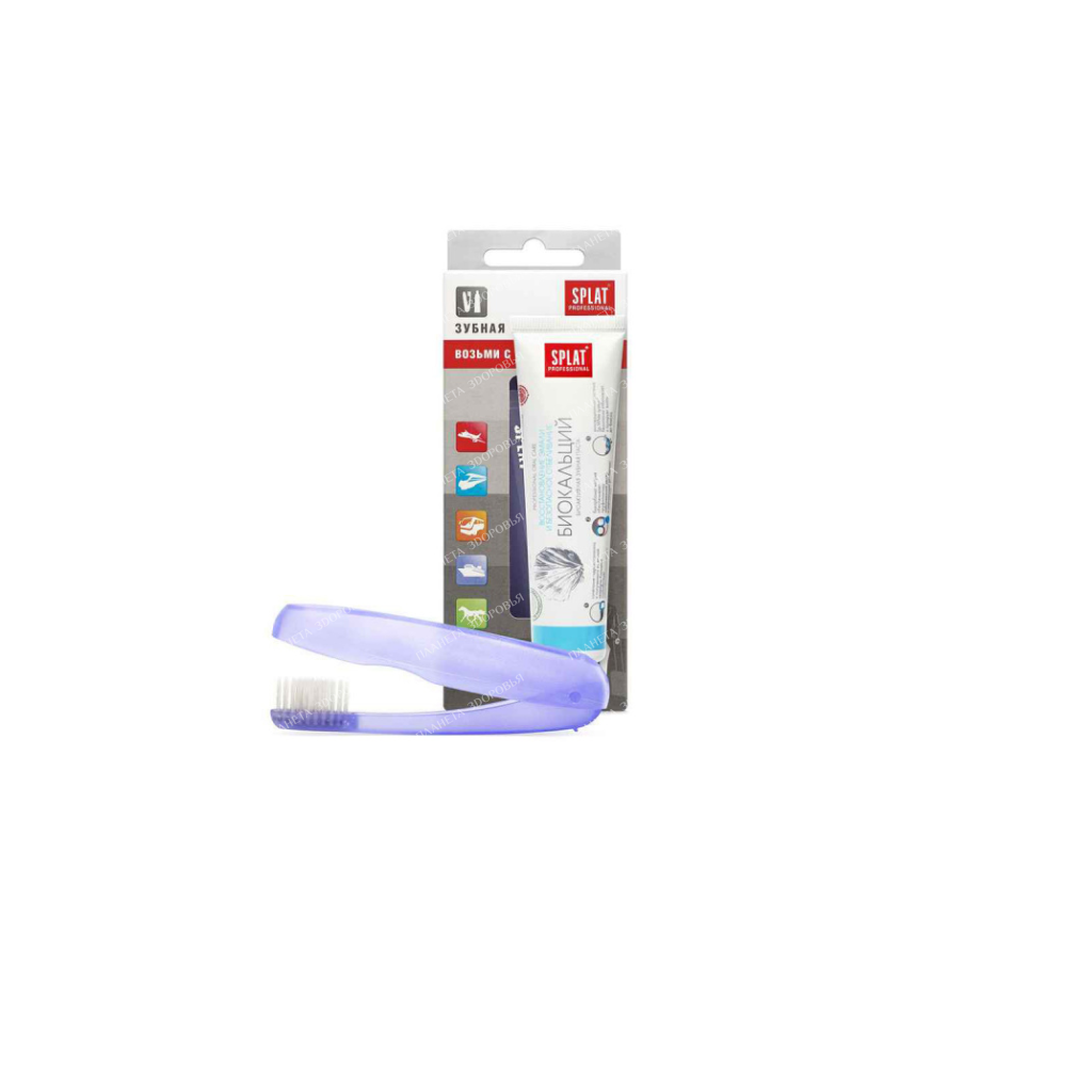 Experience the power of professional dental care with the SPLAT Professional Biocalcium Travel Kit! This compact kit includes a 40ml tube of Splat Professional Biocalcium toothpaste and a folding travel toothbrush, making it perfect for keeping your smile healthy and bright wherever you go.