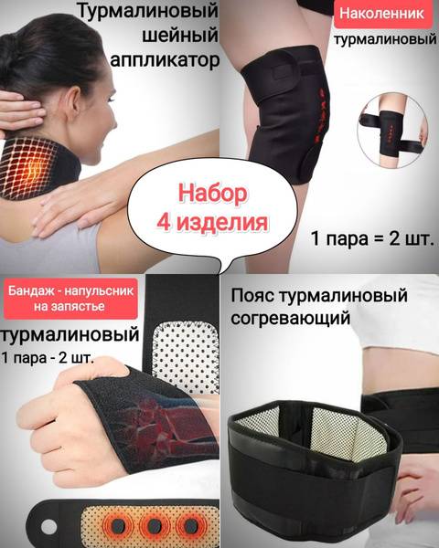 Experience the soothing warmth and therapeutic benefits of the Tourmaline 4D Set, a comprehensive 4-piece kit designed to alleviate pain and discomfort in the back, knees, wrists, and neck. This premium set includes a large lumbar support belt (waist circumference 105-115 cm), two tourmaline knee supports (knee circumference up to 45 cm), two wrist supports, and a neck support. Each piece is infused with tourmaline, a natural mineral known for its far-infrared heat and negative ion properties, promoting improved blood circulation and pain relief.