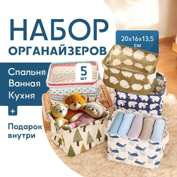 Title: Set of 5 Fabric Storage Baskets (20x16x13.5cm) - Toy Organizer, Closet Organizer, & More